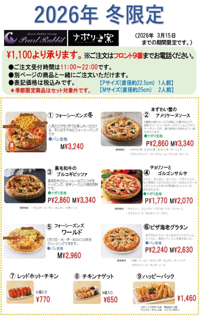 『ピザメニュー』更新!冬バージョン!